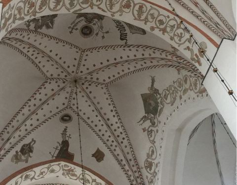 一块特别不寻常的墓碑上显示了一个骷髅掘墓人。我也特别喜欢乔治和龙壁画,其中马似乎在挠龙的肚子巨大的白色空间,一些非常有吸引力的16和17世纪壁画,以及一些辉煌的磨损墓碑。可爱的还愿船。一块特别不寻常的墓碑上显示了一个骷髅掘墓人。我也特别喜欢乔治和龙壁画,其中马似乎在挠龙的肚子。