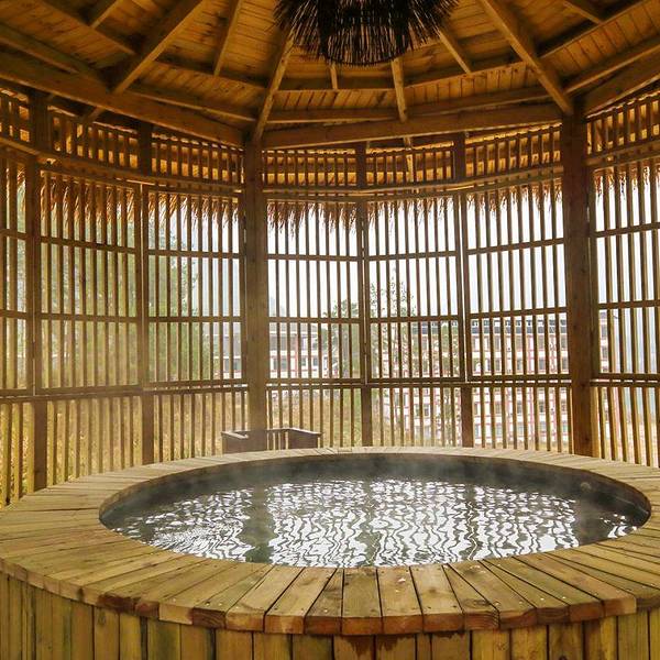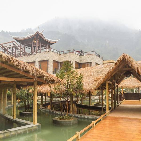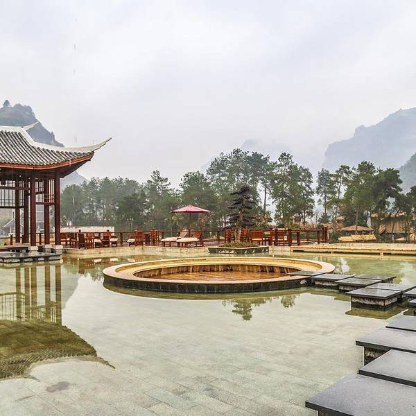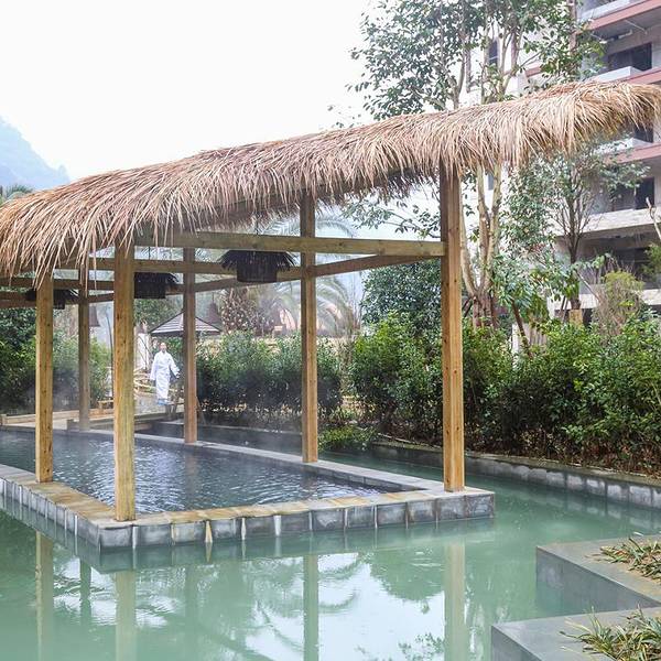 温泉中的桃源,热气腾腾的活水,奇趣的泡池树屋。 爬完半山看溶洞之后,下来泡个温泉也是极好的。九龙洞温泉度假庄园一共分为三层,大门进去之后是最高层的露天晚宴厅,不仅能够把远处葱茏的山脉尽收眼底,走到...