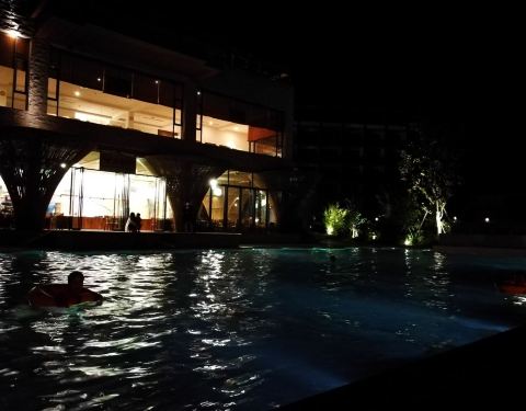 九龙洞温泉度假庄园一共分为三层,大门进去之后是最高层的露天晚宴厅,不仅能够把远处葱茏的山脉尽收...