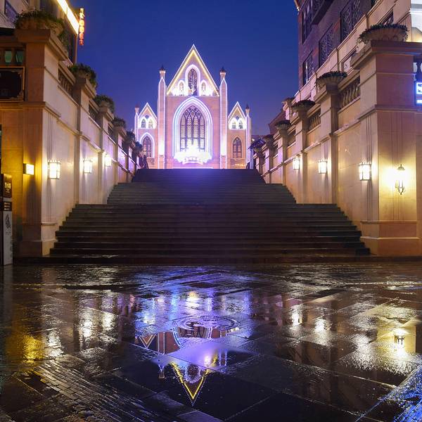 非常文艺的一个地方 有点类似上海的城隍庙 当然这里的建筑比较西式 又充满了古色古香的 一个时光隧道,一个心灵驿站,非常文艺 在这里 我们看天上的月亮,又看水中的月亮!