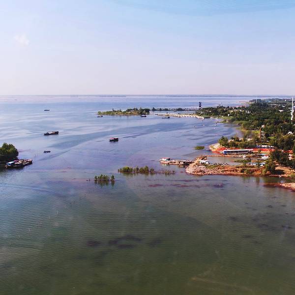 从高处看,骆马湖的形状像一匹大马的脊背,它的尾巴扫着运河。而骆马湖畔,微风清拂、碧水蓝天。