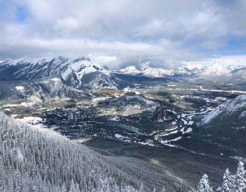 ...坐上缆车可以把贾斯珀镇的全景一览无余,还可以感受落基山脉的雄伟壮观,周围全是群山环绕,非常美丽