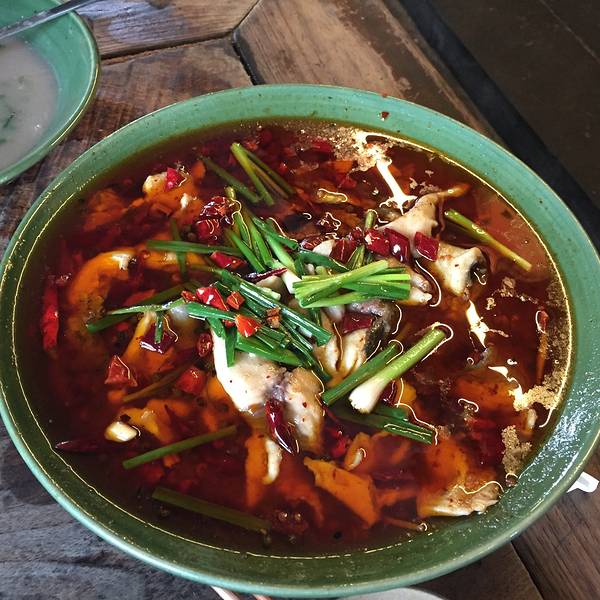江湖菜~有些古早环境和装盘~大碗吃肉,大口喝酒的氛围~不辣的土豆泥,爱葱香~豆汤~~挺寡淡的,有种行脚后,来一碗的苦命感。。。量超大的江湖水煮鱼~所谓江湖菜,大概就是要那种鱼鳞没有完全刮干净的feel吧。。。...