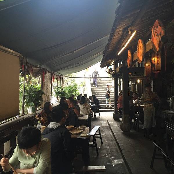 从长江索道步行到湖广会馆,刚好看到会馆边上有一家江湖菜。 所在的建筑外部在装修,找了一会儿才找到入口,里面装修风格特别武侠风,好像古装电视剧里的小酒馆,提供笔墨让客人自己写字贴上墙。 点了两菜一饭,...
