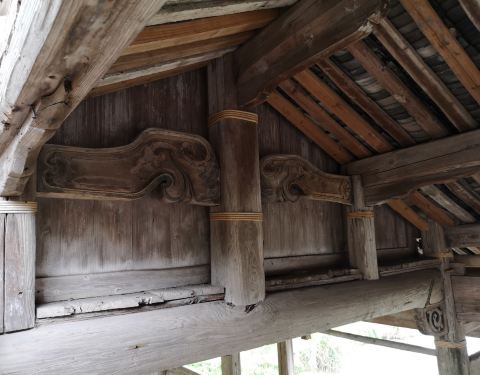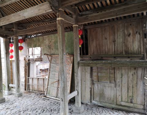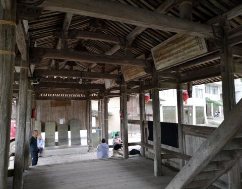 永庆桥的一头靠着村里的公路,一头隐藏在村庄里的老屋群中,外观很不醒目,给人的感觉,就好像是——“路转溪头忽现”。桥身中端有阁楼,有木梯可以上下,我好奇的上去看了,目前是堆放了不少修桥材料,因为还有排风扇,想来以前应该是住过人。泰顺廊桥,基本都属于活文物,这座就是如此,时常有人穿行,几个老年村民坐在桥头闲聊,有路过的熟人还被叫停下来攀谈。 资料:永庆桥,位于三魁镇战州下溪坪村,建于清嘉庆二年(1797年),为伸臂梁木平桥,建廊屋12间。和泗溪镇的两座廊桥一样,也属于全国重点文物保护单位。
