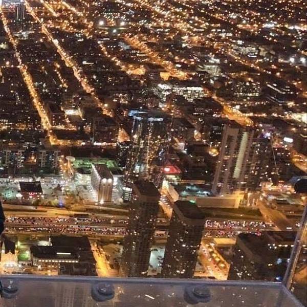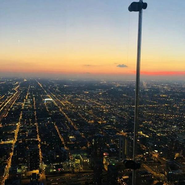 威利斯大厦原名西尔斯大楼,是芝加哥城市天际线中不可忽视的高点。大厦目前是作为一幢办公大楼使用,共有110层高,每天数以万计的游客来此,只为登上412米之高的103层高的芝加哥摩天观景台,俯瞰整个芝加哥全景。 1. 103层观景台,欣赏芝加哥的市区美景 一进威利斯大厦就会被其墙上用英文写着:“风城”、“芝加哥”、“芝城”的字样所吸引。随后步入电梯,电梯上升每一层都会显示目前所在的楼层、现在的高度以及与之高度相同的建筑物。比如25层:纽约的自由女神像,86层:巴黎埃菲尔铁塔,102层:纽约帝国大厦。出了电梯来到103层的观景台,就可以俯瞰整个芝加哥城市美景以及眺望密歇根湖对岸的天际线。 2. 真实的悬空感,惊喜动魄的刺激体验 来到这里一定不能错过的就有站在玻璃天台上体验一把惊险刺激的感觉。2009年6月设计师增了4个玻璃天台,这4个玻璃天台全部建在大厦的西侧,向内部向外延伸了约1.2米。站在透明玻璃阳台上,脚下的城市街景一览无遗,但又心惊胆战。而且还可以看到旁边天台上的游客,有种悬在空中的感觉。当然有人站在上面,也有人蹲在玻璃上,甚至更有人躺在上面。 3. 白天的晴空万里,夜晚的璀璨霓虹 白天的时候可以感受一览众山小的空旷感,夜晚的时候可俯瞰整个芝加哥灯光璀璨的夜景。建议日落前30-45分钟抵达观景台,这样就看日夜交替的美景啦。