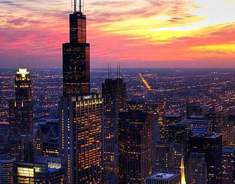 威利斯大厦原名西尔斯大楼,是芝加哥城市天际线中不可忽视的高点。大厦目前是作为一幢办公大楼使用,共有110层高,每天数以万计的游客来此,只为登上412米之高的103层高的芝加哥摩天观景台,俯瞰整个芝加哥全景。