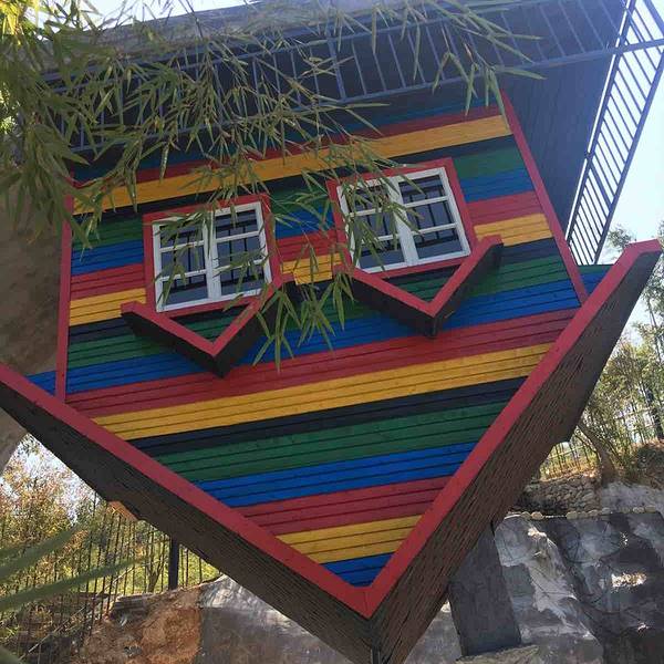没东西看的 就一个房子是倒的 一个在建 一个鞋子 还有 上面玻璃蘑菇屋!还要40 块的门票 一点不值