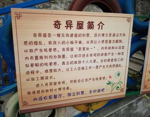 现场买票50,网上买可以便宜五元,景区里最有意思的是一间倒置屋,不过有高血压的人慎往,会有点晕眩的感觉,景区周边还有一家度假酒店,周边景致不错,附近的岩头古村可以考虑逛逛,很有民国古韵的江南古村。