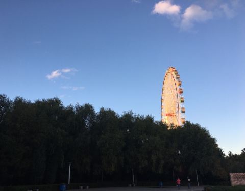 青城公园在市区中心,周边很多商场,热闹的地方,但是里面那闹中取静,有纪念碑和摩天轮,时光清幽的所在。晚上进去不要太晚,都是树林,也不要去太偏的树林里,蛮多情侣晚上去那里。