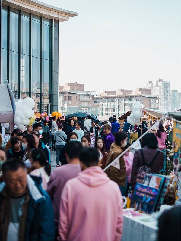 4.8还有运动体验派对🎉俯视城市街景手工咖啡手工品制作6L的空中集市蓝天白云逛集市