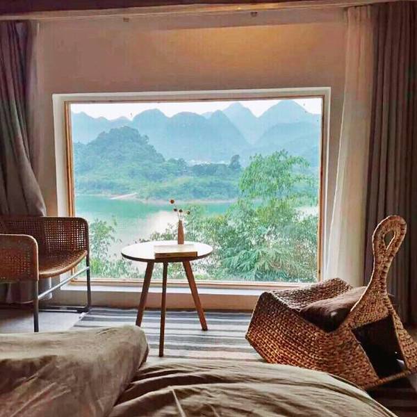 ▫️入住的是/逐日/房型,配套小院、客厅、壁炉休闲厅、厨房等公共空间,房间位于2楼,硕大明亮的落地玻璃窗,拉开窗帘即是美翻的湖景山景,天气晴朗时夜晚繁星满天哦。