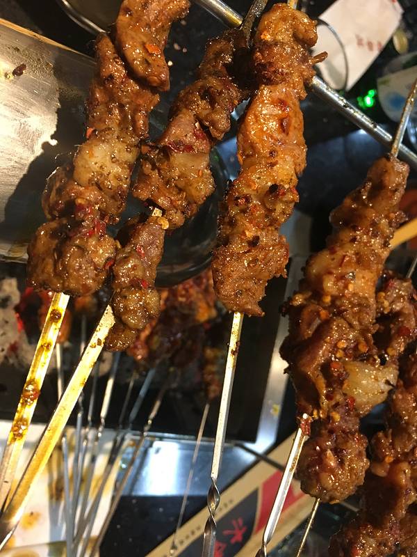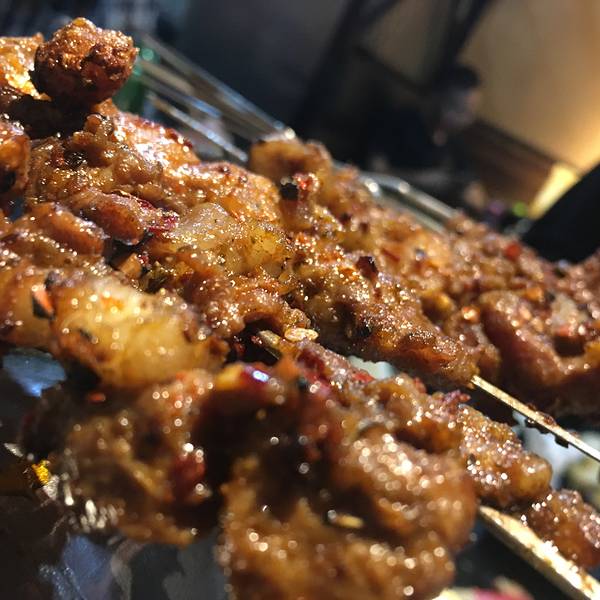 ...串 只有东北才有的 味道真的很好 蘸料是大酱 白糖 白醋 然后还有干碟 非常好吃了 全是大肉串当地朋友到我们去吃的很特色的烤串 只有东北才有的 味道真的很好 蘸料是大酱 白糖 白醋 然后还有干碟 非常好吃了 全是大肉串