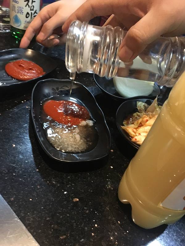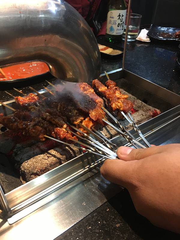 当地朋友到我们去吃的很特色的烤串 只有东北才有的 味道真的很好 蘸料是大酱 白糖 白醋 然后还有干碟 非常好吃了 全是大肉串
