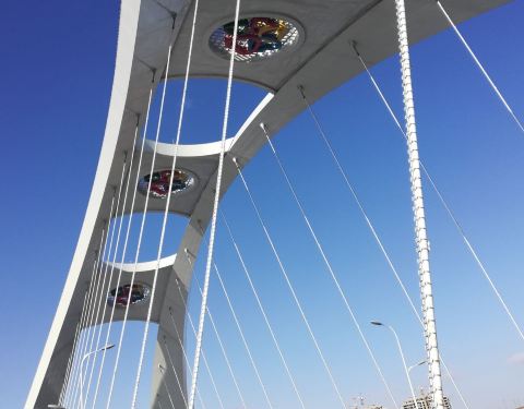 大桥造型非常新颖,横跨延吉市的母亲河布尔哈通河,尤其是夜景非常的漂亮,夜晚散步或驻足布尔哈通河...