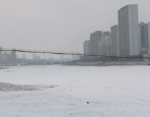 站在延吉大桥上拍摄的布尔哈通河,冬季河水基本断流了