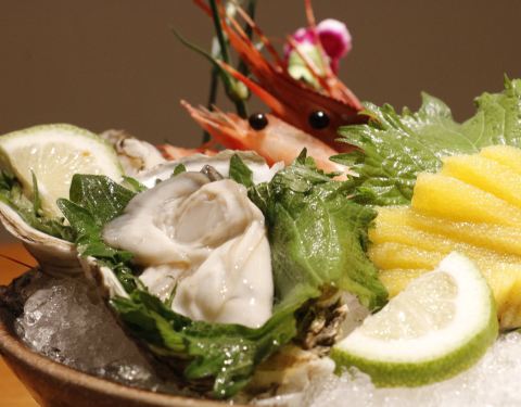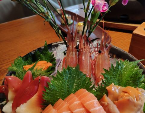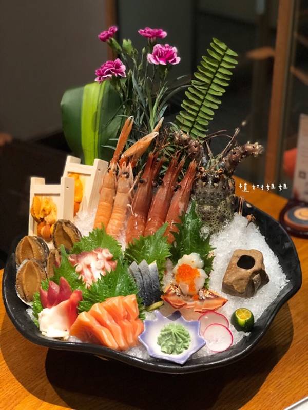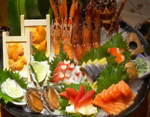 「综合刺身拼盘」爱好吃刺身的人不能错过。海胆、鳌虾、鲍鱼、三文鱼等新鲜刺身摆在一起每个都不能错过。