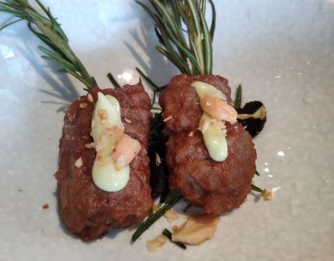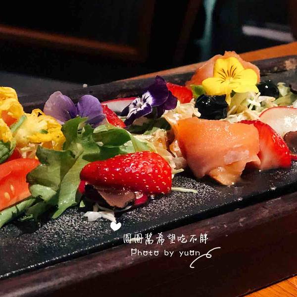红酒鹅肝,鹅肝超级细腻还有淡淡的酒香,好吃。平日雨天到店居然客满,可见人气果然十足