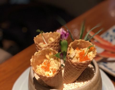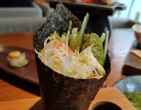 |芥末虾球^真的好吃,在桌面上一大片冷冰冰的刺身中间脱颖而出。服务员非常热情,服务一级棒