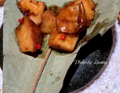 「铁板鹅肝」放在铁板上保温保持了鹅肝口感的细腻。