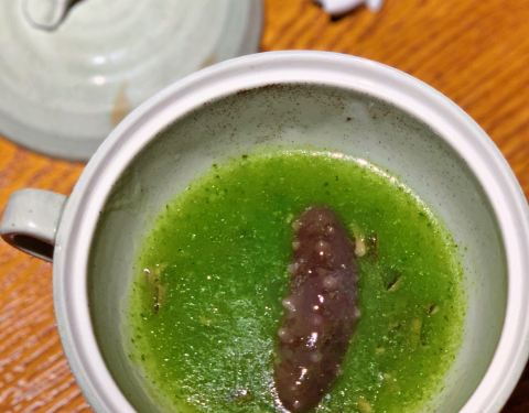 - 上汤海参,海参鲜嫩入味,菠菜汁细腻,还有野米的嚼劲。 花潮撇开环境不说,菜品方面也是让人不愿挑剔的