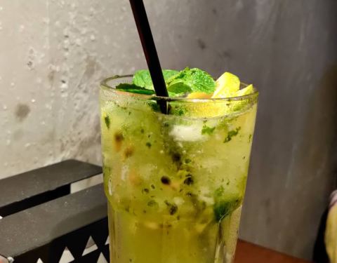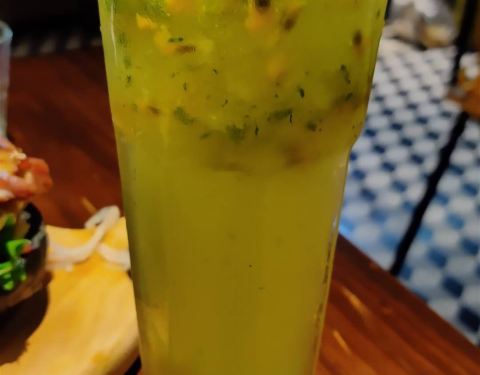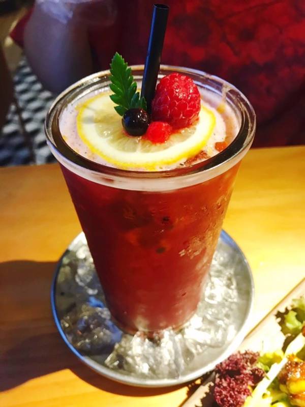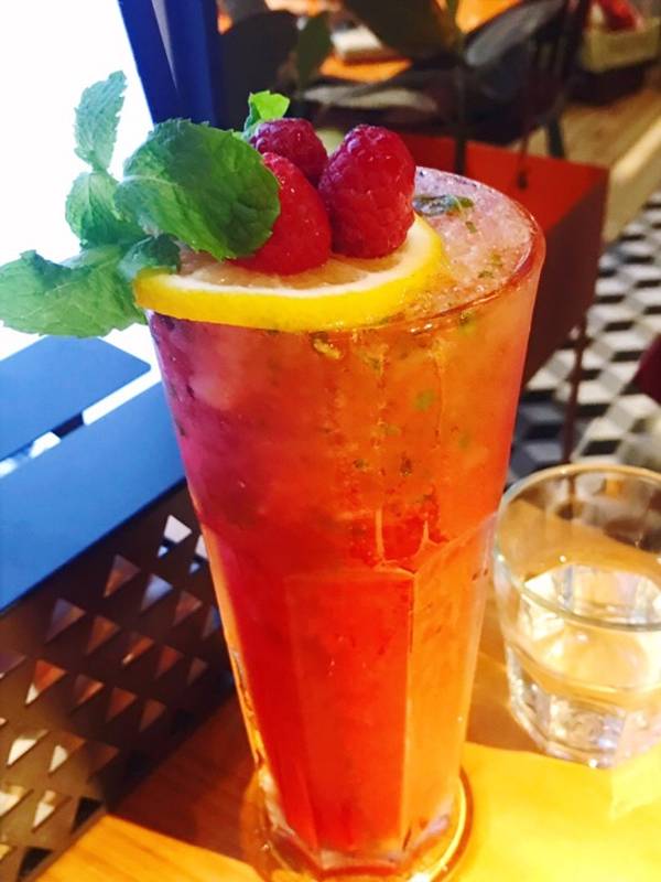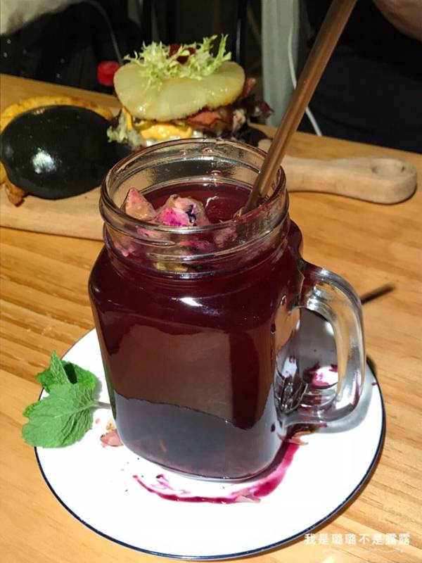 树莓莫吉托&百香果花茶,看起来都是紫红色的,属于清爽,酸甜可口的那种!喝了几口,店员还很贴心的过来问酸甜是否满意!也许这就是每次来都宾客满盆的原因吧!