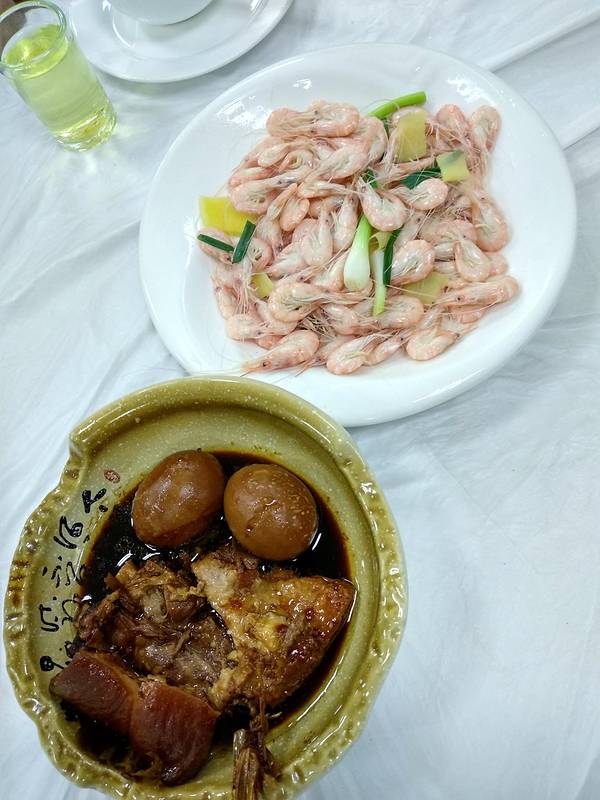 午饭早早地来到外婆小灶,昨天错过的一家店。 昨天中午在等邱记排队时在附近逛了一圈,发现这家排名靠前,但排队的人也很多,最后还是回邱记了。 今天来早了,但还是排了一回队。吃的是苏浙菜! 点了太湖三白之一的白虾,虾个头小,但肉质嫩、鲜甜,是其他虾不能比美的。 古法扎肉(东坡肉)没有老弄堂炖得软烂、肉有点点柴,但分量足,也能做到肥而不腻,五花肉加肋排的搭配,上面试是五花肉下面是肋排,肋排炖得骨头都酥了,是这里的必点菜! 似乎这边吃螺蛳是比较普遍的,家家都有,这家的螺蛳汤汁稍微柔和,咸辣适中! 个人感觉,这家要比邱记稍好!