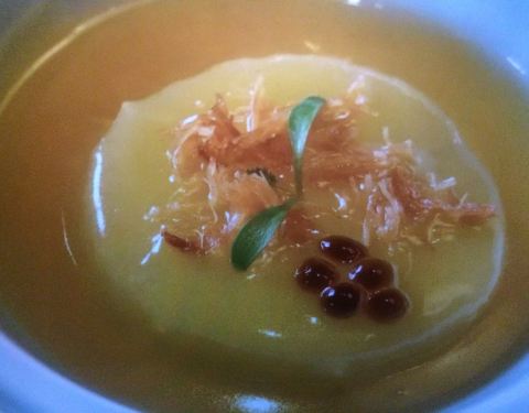 一家极具禅意、不可错过的餐厅,菜品提倡“不时不食”,春季菜单拥有春笋、香椿、百合、西芹等应景食材,餐盘精美与食物摆放得相得益彰。味道继承了江浙融合菜的精髓,河豚汤鲜美,主菜都可圈可点。餐厅在青龙山庄内,拥有园林式风景,假山瀑布也都营造出一种宁静致远的意境。