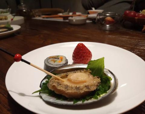 糖醋排骨,味道真的不错,肉质新鲜很嫩。搭配的沙拉蔬菜很棒,很喜欢沙拉酱的味道。鹅肝很嫩,上面的酱汁浓稠但是不腻,两者搭配刚刚好,配上紫菜和米饭,一场味觉的盛宴。螃蟹,现在是最肥美的时候,蟹黄很足,很好吃。