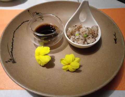 【环境】 环境虽然较偏,但难得的幽静,别有洞天,非常值得特意前往。晚上的夜景让人心旷神怡,树木倒映在湖水上,微风拂过,清爽自在。 【春季套餐】 我们点了268的春季套餐,套餐中菜色丰富,冷盘的摆盘精致,冷盘里的樱桃鹅肝一开始没有看出来,入口细腻顺滑才意识到是鹅肝,不管从上菜的顺序还是菜品的口感,都让人倍感舒服,河豚套餐深得我们喜爱,还有佐料辅助。 【服务】 服务员都盘着头发,身着中式长袍,与龙吟山房幽静的环境相呼应,很有礼貌,当我们对菜单的菜品有疑问时,经理还特地上来解释,非常的友好。