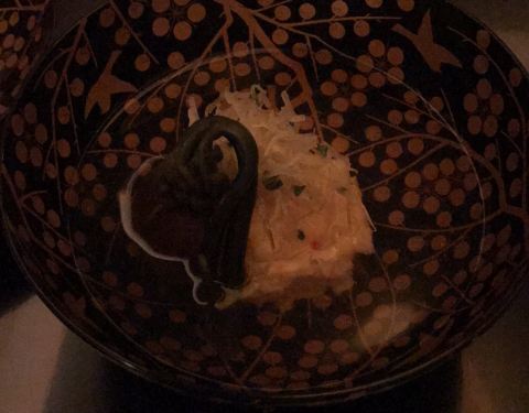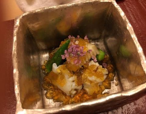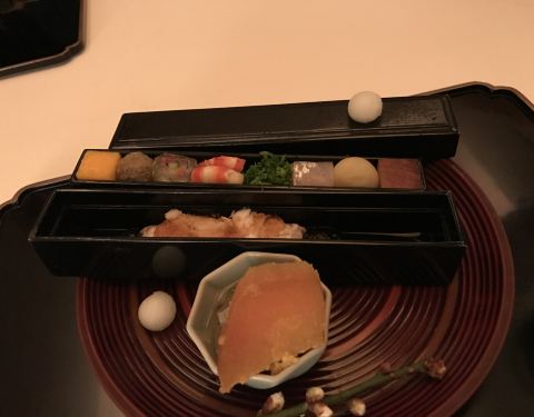 5号去的,通过大行订的。到今天还在回味中。 我不大喝温的清酒,同学第一壶点了温的。想不到异常出彩,迅速上来的酒气和包房的沉香味和头盘融合在一起,味蕾大开。 鲷鱼应该是德岛当季的,有劲道,一定是在急流险滩中生长出来。 鱼籽咸香可口。和食盒中其他的清淡的冷菜相互呼应,大师之作! 提醒一下大师没有菜单,不提供酒单,然而非常老克拉的叔叔上的清酒,白酒,梅酒都恰到好处!