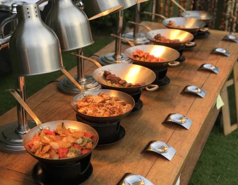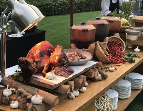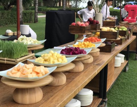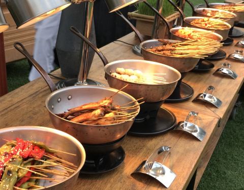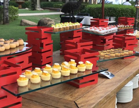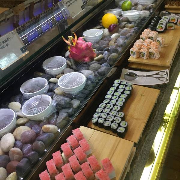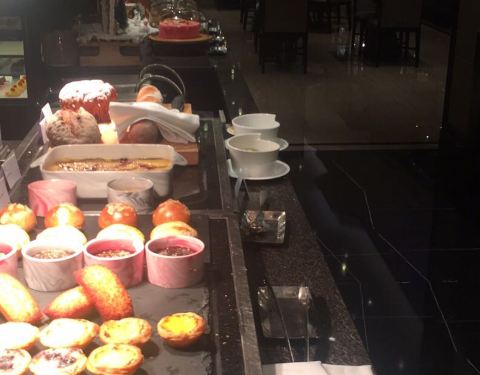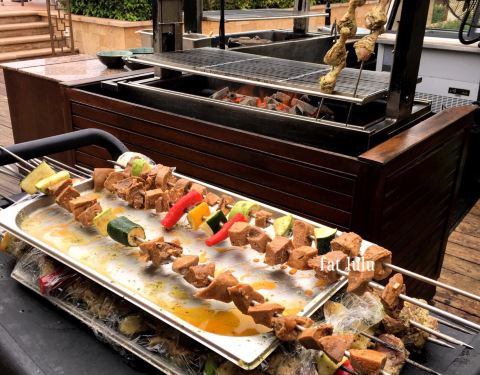 以及中式的美食、西餐的奶酪芝士,选择十分的丰富。餐厅分为室内和室外,大家当然更愿意在室外用餐