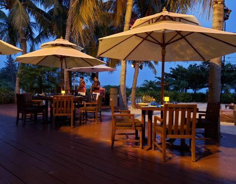 - 这里的中餐厅距离沙滩不太远,特别是白天能看到椰树大海很美