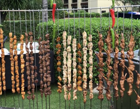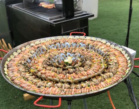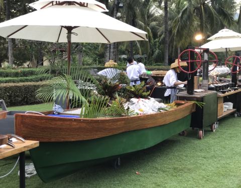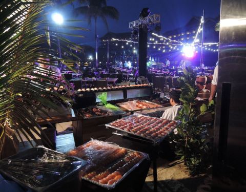 酒店傍晚的夕阳无限好、靠在海边的BBQ大趴更是炊烟袅袅升起,各种海鲜、牛肉,鸡翅,西班牙海鲜饭伴随着乐队的音乐也都活灵活现的出现在我们面前,引得全场食客唾液分泌旺盛、舌尖不断涌动食欲的巨浪,看在眼里闻...