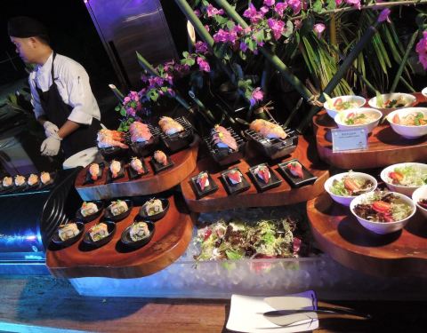 非常好的一次晚餐体验。用餐地点在海滩边,傍晚微凉的海风吹着非常舒服。我们选择了沙滩位,吃饭的时候光脚踩在沙滩上感觉很特别。另外服务没得说,服务员态度友善很贴心也很勤快,环境美美美,有乐队很好听,夜...非常好的一次晚餐体验。用餐地点在海滩边,傍晚微凉的海风吹着非常舒服。我们选择了沙滩位,吃饭的时候光脚踩在沙滩上感觉很特别。另外服务没得说,服务员态度友善很贴心也很勤快,环境美美美,有乐队很好听,夜晚灯光也很美,最后食物完美,种类非常多,烤肉类,主食,甜点,海鲜都味道不错,水果也很高品质,扇贝刺身是印象最深的,超级新鲜黄特别大,自然的甜甜的,超级好吃。