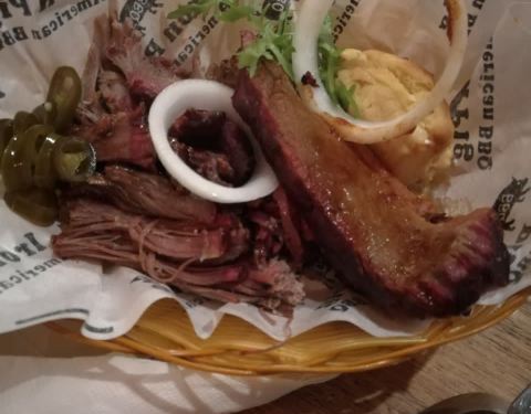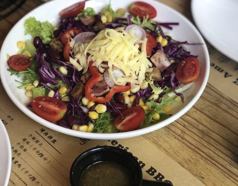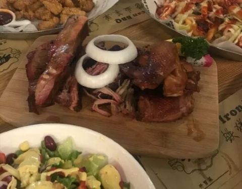 美式烤肉榜第一名果然不是盖的,店里装修满满美式风情,特级和牛雪花特别嫩,入口即化。牛排超级厚实比我的脸还大,五花肉肥瘦相间刚烤好以后超级香店家还赠送了材料丰富的水果沙拉和冰粉,简直棒棒哒!