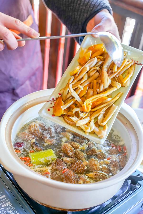 来吧,一锅又浓又香的菌汤好了,乘上一碗汤,享受大理超赞的美食吧