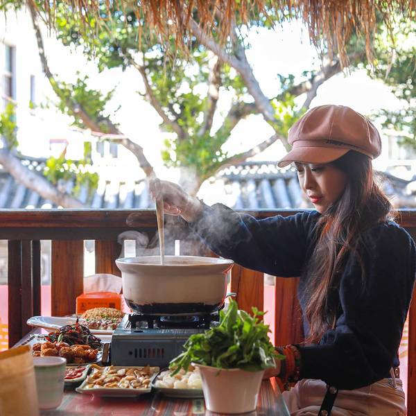 - ...菌汤锅的餐馆,味道还挺正宗,而且还能坐在二楼的阳台,一边看着古城街道上人来人往,一边享受着美味