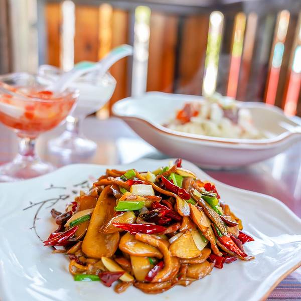 这家餐厅的店名很文艺,位置也十分好找,就在洱海门附近。这里可是吃菌子的好地方,干椒牛肝菌微辣,菌子的鲜美并没有被掩盖,吃起来非常鲜嫩;跑山鸡汤锅,汤锅上了之后,服务员会把菌菇放进去,开锅后再等10分钟可以喝汤,20分钟可以吃菌,味道十分鲜美。