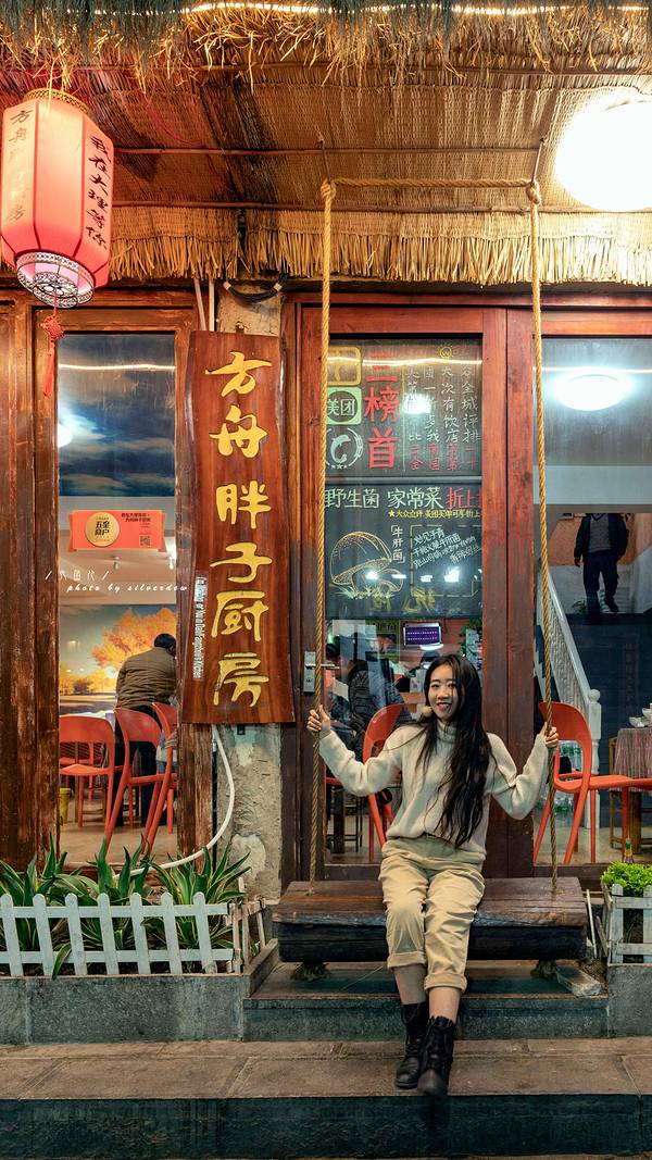 ...菌汤锅的餐馆,味道还挺正宗,而且还能坐在二楼的阳台,一边看着古城街道上人来人往,一边享受着美味