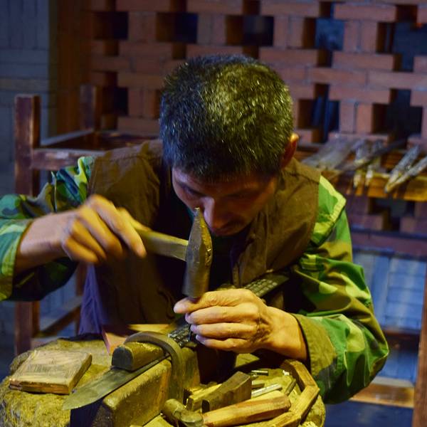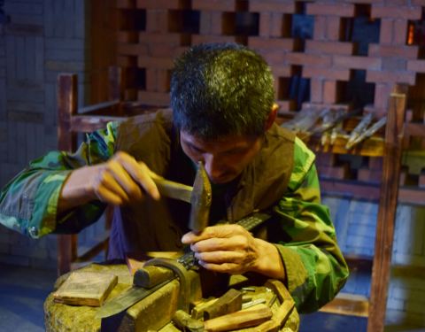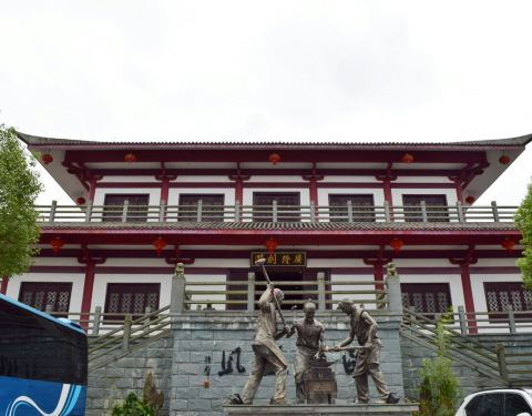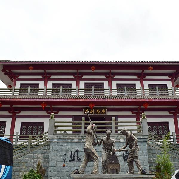 从青田到龙泉沈广隆剑铺,车程两小时左右,到的时候,天阴阴的,乌云压空城欲摧的感觉,风云变幻,颇有电视剧中的武侠氛围。龙泉,文有瓷,武有剑,情牵竹,这个有着青瓷之都、宝剑之邦之称的小县城,小却不平凡。沈广隆剑铺主要分为三个展区,广场中间可以看到古人铸剑的打造铜像,第一个战区主要是师傅展示铸剑过程,第二个展区就是中间这个二层建筑,主要是介绍龙泉宝剑的历史,以及一些宝剑成品仿品的陈设,第三个展区则是铸剑师真实铸剑的地方,游人不能入内。 整个剑铺参观的时间大概一小时左右,真正喜欢宝剑的可以看个两小时,不收门票的。热锻剑,大家在这看了很久,那个打剑的时候,火光四溅,相当壮观,不过得小心别靠太近,溅到还是有点疼的。同给游客展示热锻剑不同,这里是真正锻剑师傅的工作场所,看的出锻剑环境的艰辛。师傅在给剑身装饰雕琢。精雕细琢的活最是考验功夫。剑身装饰雕琢,好多龙泉宝剑剑身都会刻字。龙泉宝剑始创于春秋战国时期,以“坚韧锋利,刚柔并寓,寒光逼人,纹饰巧致”四大特色而成为中华第一剑。在剑铺欣赏一把剑“出生”的过程,热锻造,冷锻造,磨砺,雕琢等等过程不断反复,才真正知何为宝剑锋从磨砺出,真正懂宝剑得之不易,果然也就英雄才配的起宝剑。
