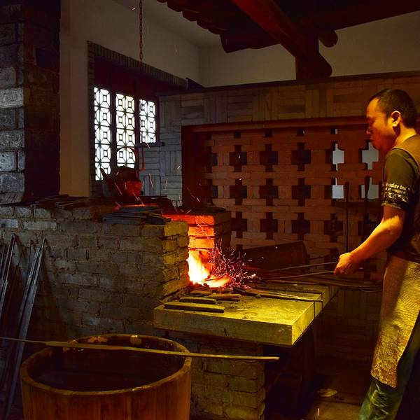 在龙泉沈广隆剑铺欣赏了一把剑“出生”的过程,热锻造,冷锻造,磨砺,雕琢等等过程不断反复,才真正知何为宝剑锋从磨砺出,真正懂宝剑得之不易,果然也就英雄才配的起宝剑。剑铺除了铸剑过程,还有成品剑展厅,以及一些名剑仿品展示,当然真的有很多铸剑师傅在锻剑,不只是展示过程。