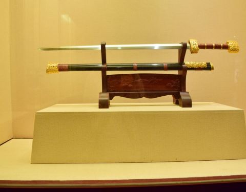 沈广隆剑铺主要分为三个展区,广场中间可以看到古人铸剑的打造铜像,第一个战区主要是师傅展示铸剑过...