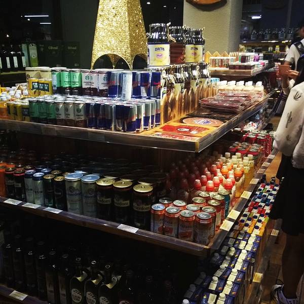 各式外国进口熏肉火腿、红酒、饮料,甚至在免税区都没见过,各种品尝,实在过瘾。商品琳琅满目,一应俱全
