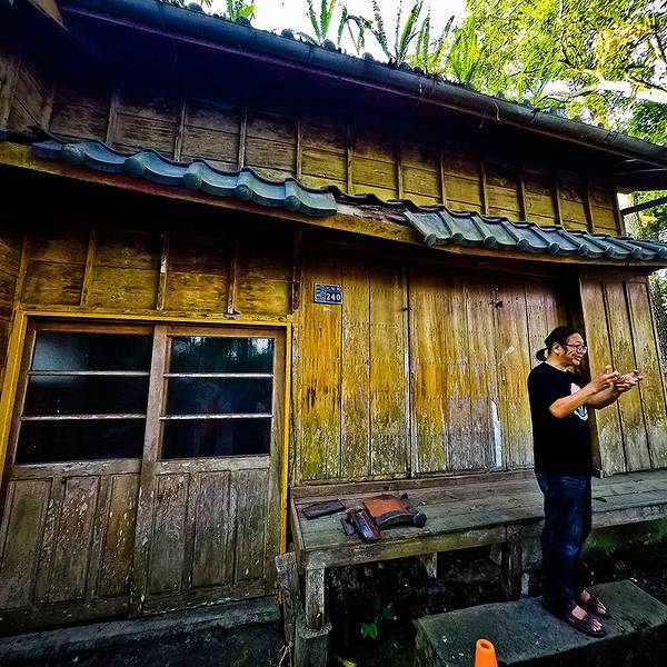 要说在台东最意想不到的收获便是认识了阿度。我从来没有想到过导览会变得如此的有趣,仅仅只是一个在田野乡村里面骑单车,都会让人不会觉得无聊,这一切都因为有阿度。阿度给我们介绍着这里的一草一木,这是一栋被日军遗弃的日式房屋,当年日军在这里生根发芽,后来失败后也就没有在这里继续生活,村里留下了许多的日式房屋,现在却变成了一栋栋的危房,他想做一件事情,把这些危房都维修起来,给将来的游客参观。夕阳西下,大家一起在绿叶中踩单车听阿度的解说是件非常惬意的事情。