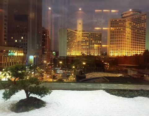去顺德临时在广州下榻一晚,朋友圈不小心暴露了行踪,立马被广州的朋友锁定了,生拉硬拽一定要一起吃饭,朋友找的这家位于丽柏广州五楼的金井日本料理。由扶梯上去,被旁边的室内喷水池吓了一跳。 门口服务生小姐姐很热情,带我们进到座位,而且会粤语,国语也很标准,完全不像惠福东路那些开店的阿婆。上菜介绍也很勤收盘子换骨碟,一下子拉高了广州服务的印象分。 这个半开放的包间临近街道,高大的落地窗可以一边吃一边欣赏灯火璀璨的城景。包厢采用和式装修,需要拖鞋,一些清酒盒与瓶子都是很好的装饰物。 前菜为金井「沙律」,几样果蔬搭配在一起,红的绿的黄的很是好看,浇上油醋汁,开胃的同时还很美味。 「烟熏三文鱼刺身」对于一个日料爱好者来说,刺身吃了很多次,烟熏的三文鱼刺身却很少见,与三文鱼相比,烟熏味很浓郁,且也具有一定的盐分,而鱼肉则保持生鱼片Q软的口感。 「黄金酱烧广岛蚝」一份两头,个头很大,蚝肉饱满,对于海边长大的人来说,这个蚝第一感觉是新鲜,而很快芝士便开始接管味蕾,香浓的芝士与鲜美的蚝完美搭配。 「法國鹅肝」一式也是两份,以脆烤过的面包为基底,铺上肥厚的鹅肝,鹅肝色泽鲜艳均匀。鹅肝必须与面包同食,鹅肝油香四溢,渗入面包之中,一脆一嫩,相得益彰,而吸收了鹅肝油脂的面包抵消了鹅肝的那种腥味。 「铁板牛肋肉」个人很喜欢的一道菜,牛肋肉经过炙烤,满屋喷香,趁热吃一块,收汁入味,牛肉特别嫩,略带一点嚼劲,吃起来非常带感。 「铁板烧白蘑菇」很独特少见的一道菜,以白蘑菇为小盅呈汤。汤汁一口的量,但是却鲜劲十足,用叉子叉起整个白蘑菇,喝一口汤,再吃下模糊,都是大森林的味道。 「雪蟹焗寿司卷」便是主食了,没想过蟹肉也能做出如此清新的味道,很有海岛风情的一道寿司,除了部分两个略松垮,一夹就松了,味道形制都很好耶。 最后送的小甜点,非常暖心。「甜品桃胶」冰冰凉凉还有小颗粒,我是很喜欢的。