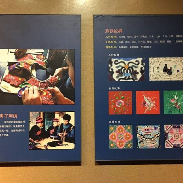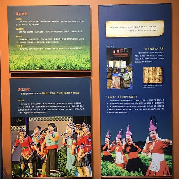 中国畲族博物馆在景宁县城南美丽的鹤溪河畔,总占地面积26500平方米,还是非常大的一个博物馆哦中国畲族博物馆在景宁县城南美丽的鹤溪河畔,总占地面积26500平方米,还是非常大的一个博物馆哦。博物馆中包括畲族博物馆、文化馆、图书馆三部分,是一座集民族艺术培训、文艺民俗展演、文化休闲娱乐、创作研究、...中国畲族博物馆在景宁县城南美丽的鹤溪河畔,总占地面积26500平方米,还是非常大的一个博物馆哦。博物馆中包括畲族博物馆、文化馆、图书馆三部分,是一座集民族艺术培训、文艺民俗展演、文化休闲娱乐、创作研究、文化经营性活动于一体的综合性文化标志性建筑。 博物馆由陈展厅、临展厅和办公区三部分组成,建筑整体富有畲族民居特色,内部陈展以紧贴畲族的发展变迁为主线,通过大量的文物、实物和图片,利用现代的高科技表现手法向人们讲述畲族的发展史和畲族文化。 展馆建筑以传统的畲族民居为主调,融入现代畲族建筑元素,土墙青瓦,古朴典雅而清秀。通过这些畲族人用的器具,可以让人更近距离地了畲族的历史文化、风俗信仰、生产生活、环境聚居、饮食服饰及歌舞等。 馆内还藏有畲族各个时代流传下来的陶瓷器、传统服饰、生产工具、玉器、木雕等历史文物四千余件,这些文物都提供了人们了解畲族人文历史,解读畲族文化的重要窗口,如果要了解畲族文化,那这个博物馆一定是最佳的选择。 藏品类别主要有生产生活用具、畲族服饰、文献、祭祀等道场用具。展厅分布为序厅、起源与迁徙、环境与聚居、生产与交换、饮食与服饰、社会与风习、信仰与崇拜、文化与艺术八个单元。 馆中的藏品共计1800余件,主要来源于民间征集和社会捐赠,重点藏品为畲族祖图,特色藏品为畲族服饰、族谱以及狩猎器物等。 畲族中还有许多非遗文化,比如下图中的两位畲族老奶奶,一个正在剪纸,有点类似剪窗花。 作为景宁标志性建筑的中国畲族博物馆,在展示畲族特色风貌和灿烂文化之余,也让我们真正去了解畲族人文历史,解读畲族独特的民俗。 展开 2019-09-07 07:19