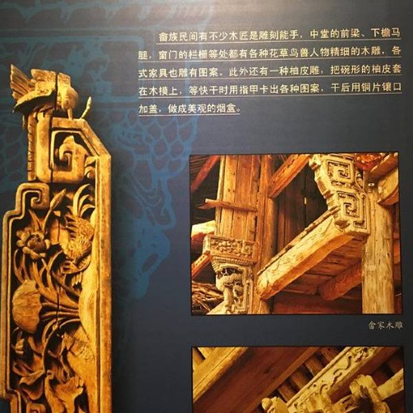 在这里,我们可以体验畲族文化,了解畲族历史,观赏畲族文物。木作是畲族类型不多的手工艺之一吃完丰盛的午餐后,我们先去酒店入住,酒店叫做欣和华侨大酒店。放下行李之后,我们去了行程的第一个点——畲族博物馆。在这里,我们可以体验畲族文化,了解畲族历史,观赏畲族文物。我们一进去看到的就是一个大...吃完丰盛的午餐后,我们先去酒店入住,酒店叫做欣和华侨大酒店。放下行李之后,我们去了行程的第一个点——畲族博物馆。在这里,我们可以体验畲族文化,了解畲族历史,观赏畲族文物。我们一进去看到的就是一个大堂,大堂里有很多储物柜,储物柜里放着畲族的民族服装,大部分都是女性的民族服装。然后大堂进去挂着一张一个畲族的姑娘开门迎接我们进去的照片,让人看了之后,心情比较愉悦,舒服,也比较亲切。我们看完民族服装后,开始进入展厅,展厅有八个。展厅分为序厅,起源与迁徙,环境与聚居,生产与交换,饮食与服饰,社会与风俗,信仰与崇拜,文化与艺术八个单元。第一个展厅是介绍人口方面,主要介绍了他们从哪里来,是怎么发展过来的,他们的历史,人口的分布,以及他们民族的住宅,一些建筑,土楼,打猎买卖这样一种生活的活动。在生产方面,有竹编,木作,纺织等。竹编主要有斗笠,线篓,火笼等,其工艺特别讲究精细。木作是畲族类型不多的手工艺之一。除了建筑木作,还制作八仙角,香火桌,大师椅,四面床,碗柜等。纺织,以往畲民织布供自己家人穿。现在已无人穿家织布,只有少数地方人织麻布做豆腐袋,蚊帐,拦腰,孝服。在畲乡婚嫁中,从民歌,彩带,服饰到锄具,射箭等,无一不反映畲族人民的独特文化。这个位于深山的少数民族,他们用自己细腻古朴的方式,男娶女嫁,一代代繁衍传承,在大山的怀抱中,谱写着动人的浪漫。畲族的银饰,也是畲族的一个亮点,非常的精致好看。个人认为这博物馆的内容还是比较全面的,把民族很多方面都描述的很全面,很细致,可以从很多方面让人们了解这样一个民族,习俗,文化,语言,用一些仿真假人来情景再现,让人觉得比较真实,场景古董器具都能展现在眼前,对古董的介绍也是比较详细,当你去看到实物时,加上旁边的文字介绍就会对古董有一定的了解。