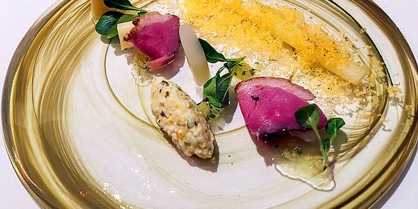 环境很大,一家公司围在那里聚餐都不是问题,餐厅推出的是法式跟日式元素相结合的菜,除了精致的摆盘以外,很详细地介绍食物的来源什么的,还会介绍今天的主厨是谁,服务很好,都照顾好没个人,要推荐的都说不上名字,有兴趣可以问下当天最好的是什么,服务生都很愿意解答。