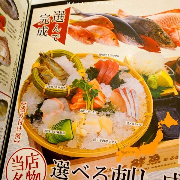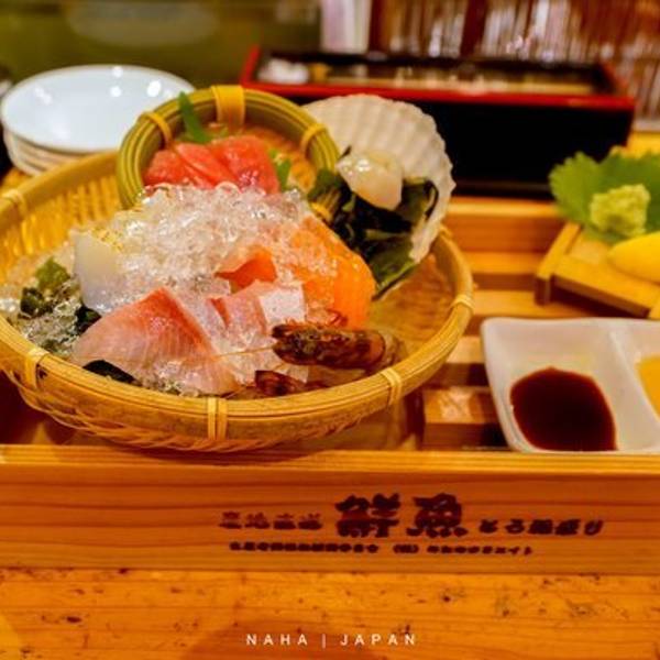 一家冲绳的网红居酒屋,建筑风格独特,一眼望去都是木头牌,过目难忘。食材产地全部写在了菜单上,且均有渔港的渔民直送,主要食材特定到人,十分令人放心。海鲜拼盘里的生鱼片有当日食材,而且可自选,非常新鲜劲道。